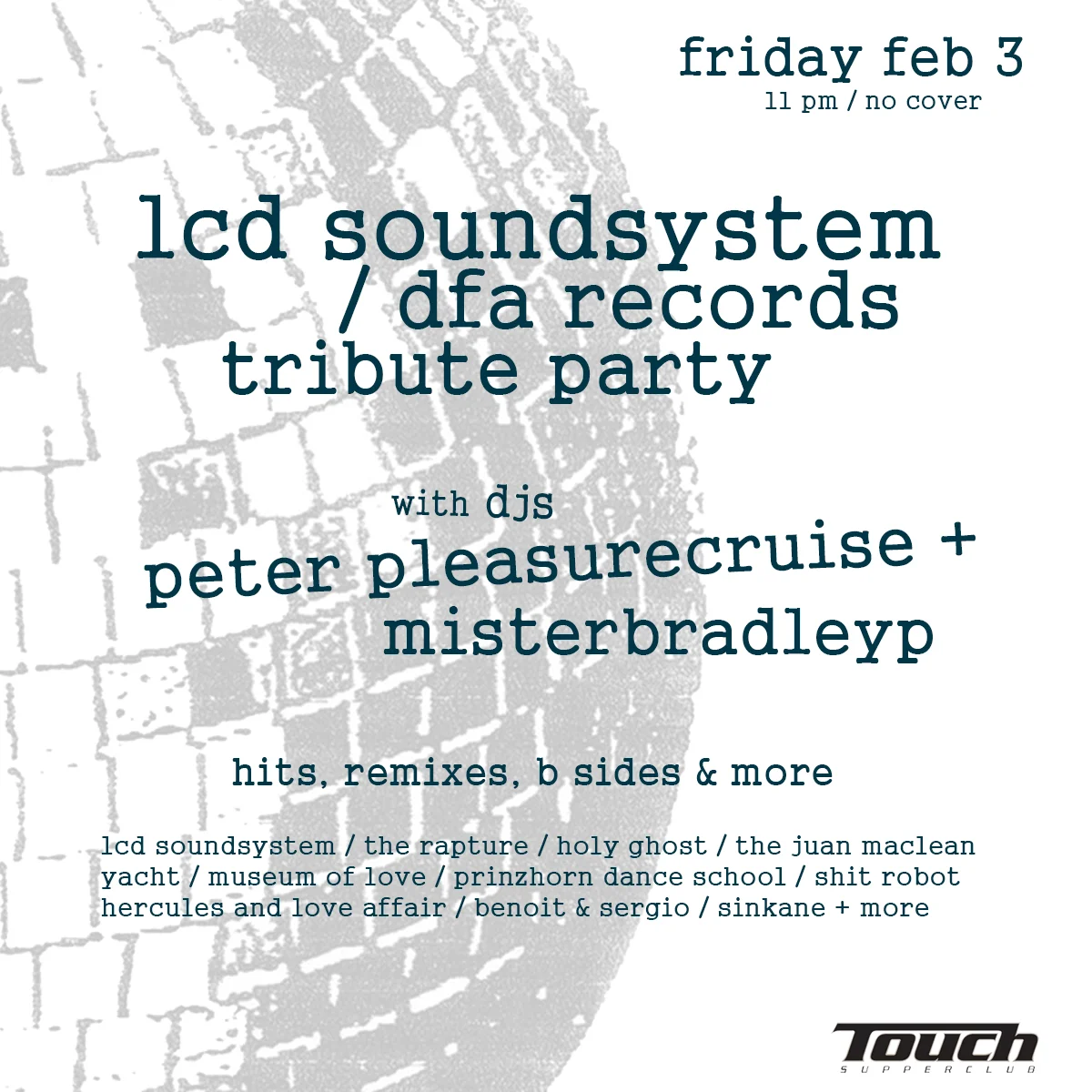 LCD Soundsystem / DFA Tribute Party w / Peter Pleasurecruise & MisterBradleyP (Downstairs) + DJ Funk Shway (Upstair)